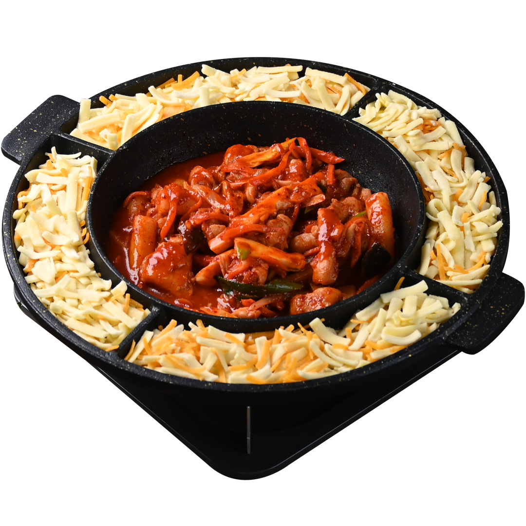 | 原材料 | 鶏もも肉(ブラジル産)、特製旨辛ダレ(コチュジャン(水飴、米、唐辛子粉、食塩、玉ねぎ、大豆、にんにく、大豆粉、もち米、米粉、麹)、水飴、玉ねぎ(国産)、砂糖、醤油、にんにく(国産)、荒唐辛子、酒、ピーナッツ、ごま油、カプサイシンソース(水飴、オレオレジン直物唐辛子(天然唐辛子抽出成分)、醸造酢、とうもろこし澱粉、精製塩、製白糖、グレープフルーツ抽出物他)、白ネギ(国産)、塩、コショー)、ナチュラルチーズ(モッツァレラッチーズ、チェダーチーズ)、トッポギ(米粉(米(国産))、食塩)、ウインナー(豚肉(国産)、豚脂肪(国産)、糖類(水あめ、ぶどう糖、砂糖)、食塩、香辛料)、人参(国産)、玉ねぎ(国産)、ダシダ(食塩、小麦でん粉、玉ねぎ粉、にんにく粉、牛骨エキス、その他)、/調味料(アミノ酸等)、酒精、イノシン酸、グアニル酸、ナトリウム、乳化剤、キサンタンム、加工澱粉、リン酵母酸塩(Na、K)、保存料(ソルビン酸K)、酸化防止剤(V.C)、発色剤(亜硝酸Na)、セルロース、香料、酸味料、(一部に鶏肉、牛肉、豚肉、小麦、大豆、ごま、ピーナッツ、乳を含む) ※原材料の一部に鶏肉、牛肉、豚肉、小麦、大豆、ごま、ピーナッツ、乳を含む |