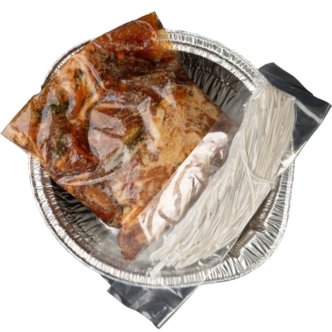 甘辛ダレがしみ込んだやわらか牛カルビを、たっぷりの野菜と一緒にジュワッと炒めた韓国定番メニュー「プルコギ」を、アルミ鍋入りで手軽に楽しめる一品です。特製のコク旨しょうゆダレには、りんご・にんにく・ごま油の風味をきかせ、韓国屋台の香ばしさをそのまま再現。アルミ鍋のまま火にかけるだけで、手間なし・洗い物なし・本格の味!ごはんのおかずにはもちろん、ビールや焼酎との相性も抜群。キャンプやアウトドア、夜食にもぴったりです。