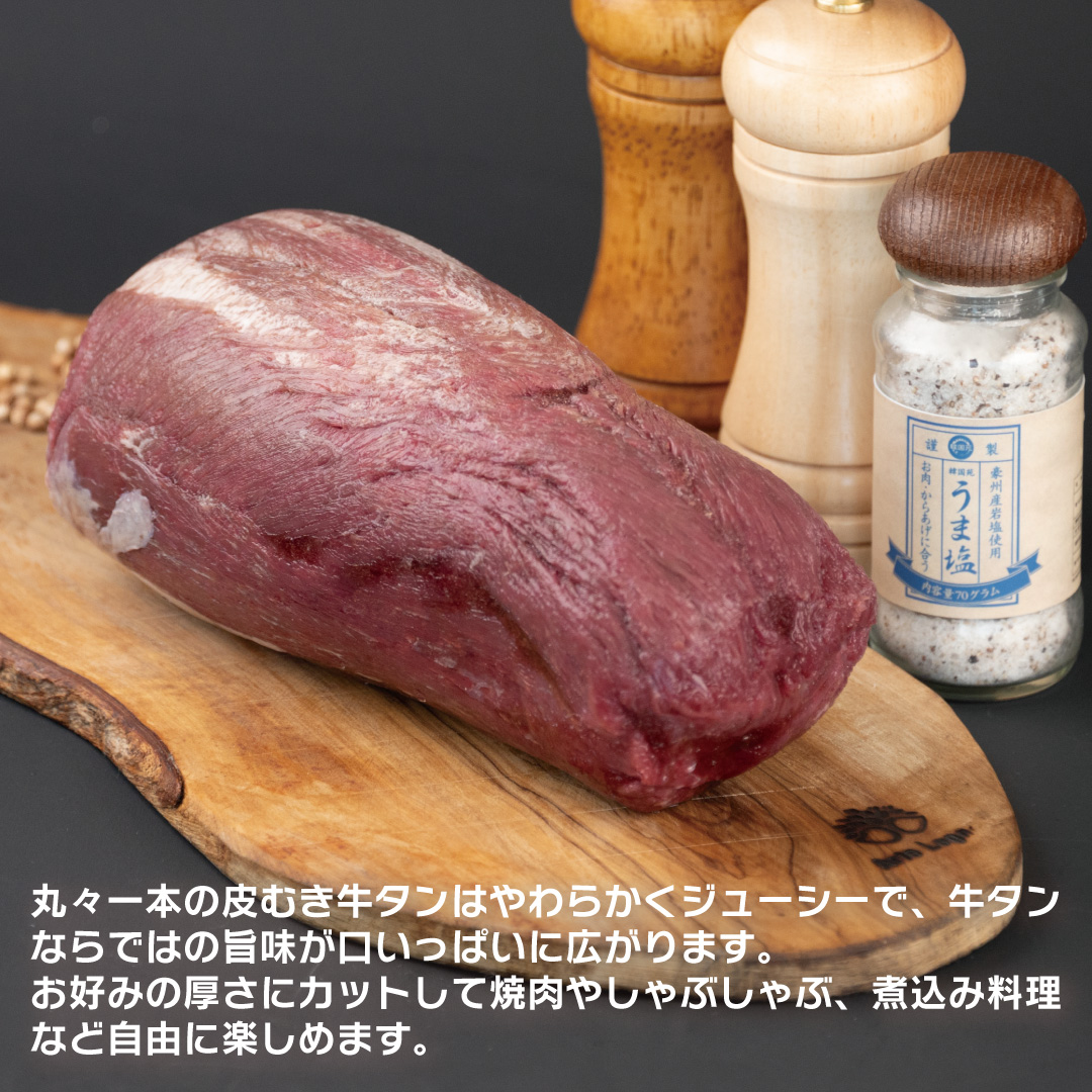 丸々一本の皮むき牛タンは柔らかくジューシーで牛タンならではの旨味が口いっぱいに広がります。お好みの厚さにカットして焼肉やしゃぶしゃぶ、煮込み料理など自由に楽しめます。
